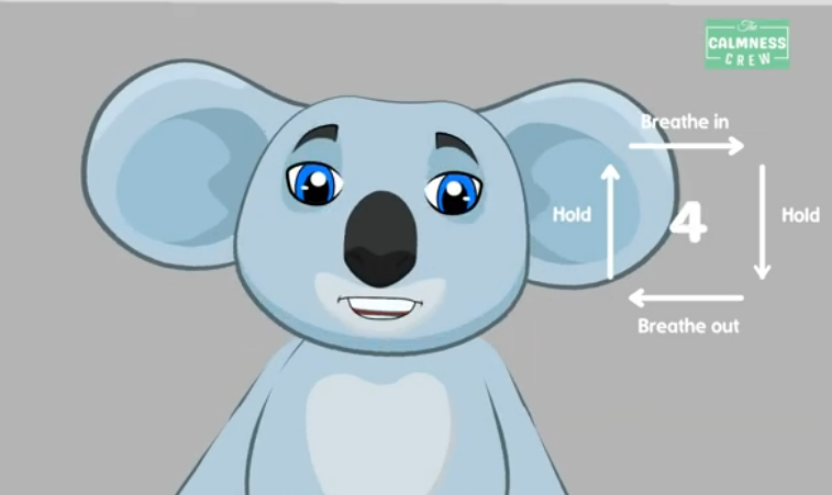Koala animation showcasing the box breathing technique when stressed on their first day of school.